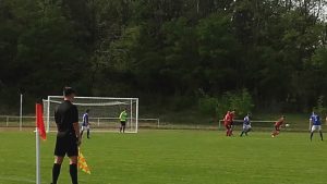 Das klappte nicht so wie gewünscht aber die SG kam trotzdem gut ins Spiel, es gab keine zwingende Chance der Gastgeber zunächst – die mit langen Bällen versuchten, das Mittelfeld zu überbrücken und vorne dann irgendwie in Torraumnähe zu kommen.