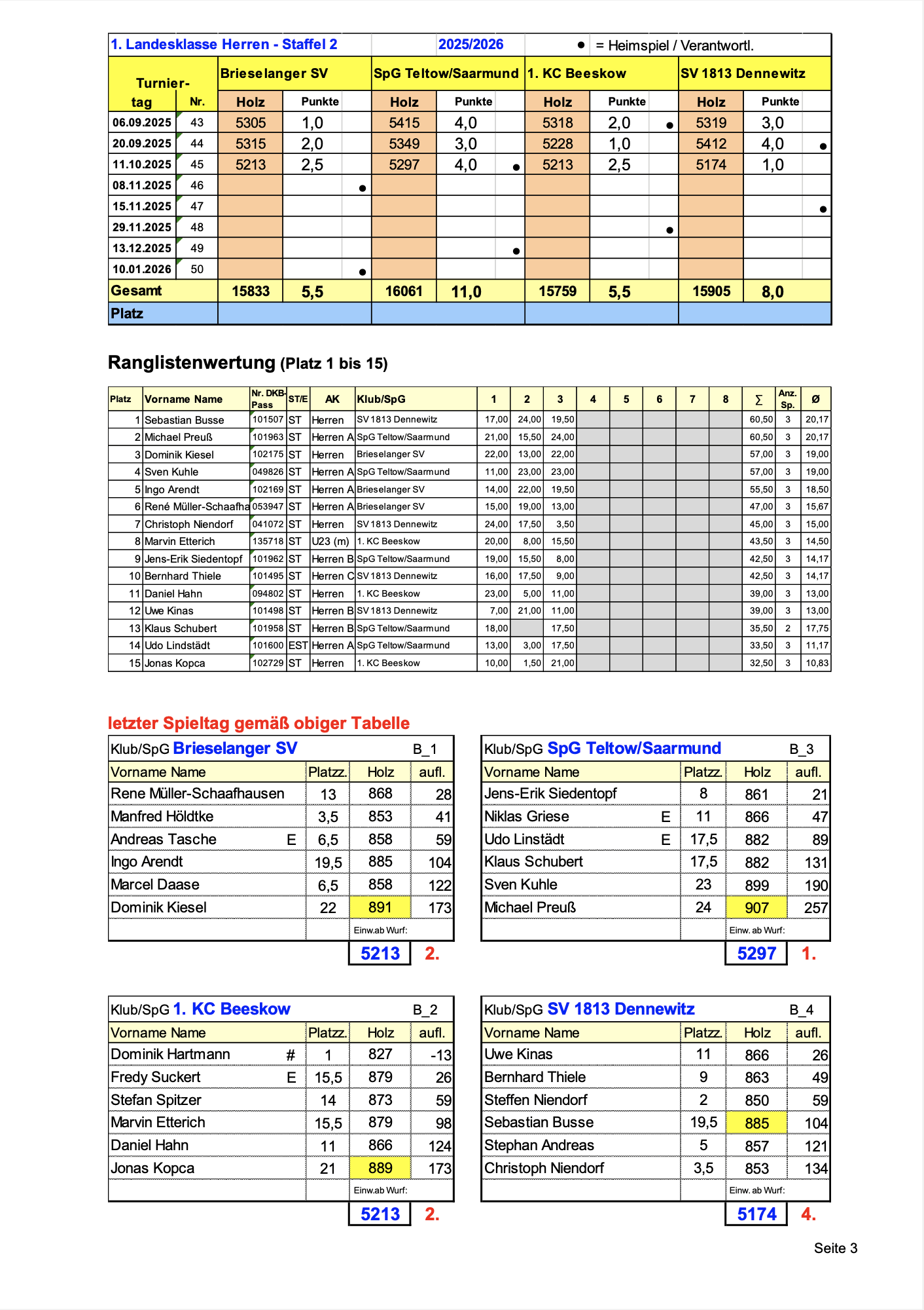 Durch den letzten Platz der Sportsfreunde aus Dennewitz konnten wie die Tabellenführung ausbauen. Nun geht es am 08.11. zum letzten Spiel der Hinrunde nach Brieselang.