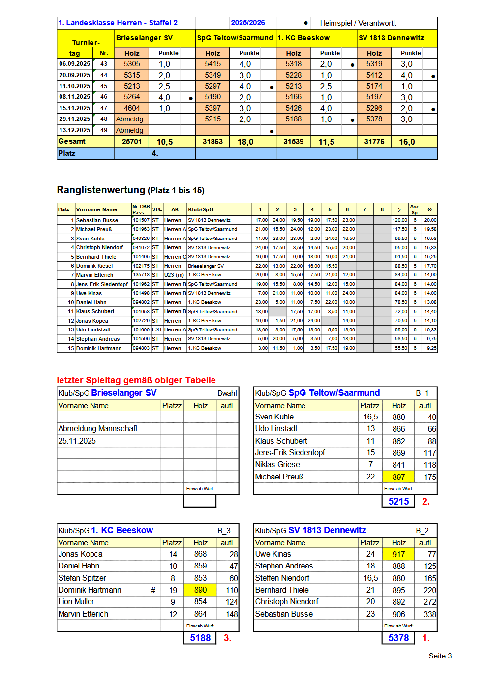 Die Sportsfreunde aus Dennewitz gewannen überlegen ihr Heimspiel. Wir lieferten uns mit den Keglern aus Beeskow ein spannendes Spiel, welches erst im letzten Durchgang für uns entschieden wurde.