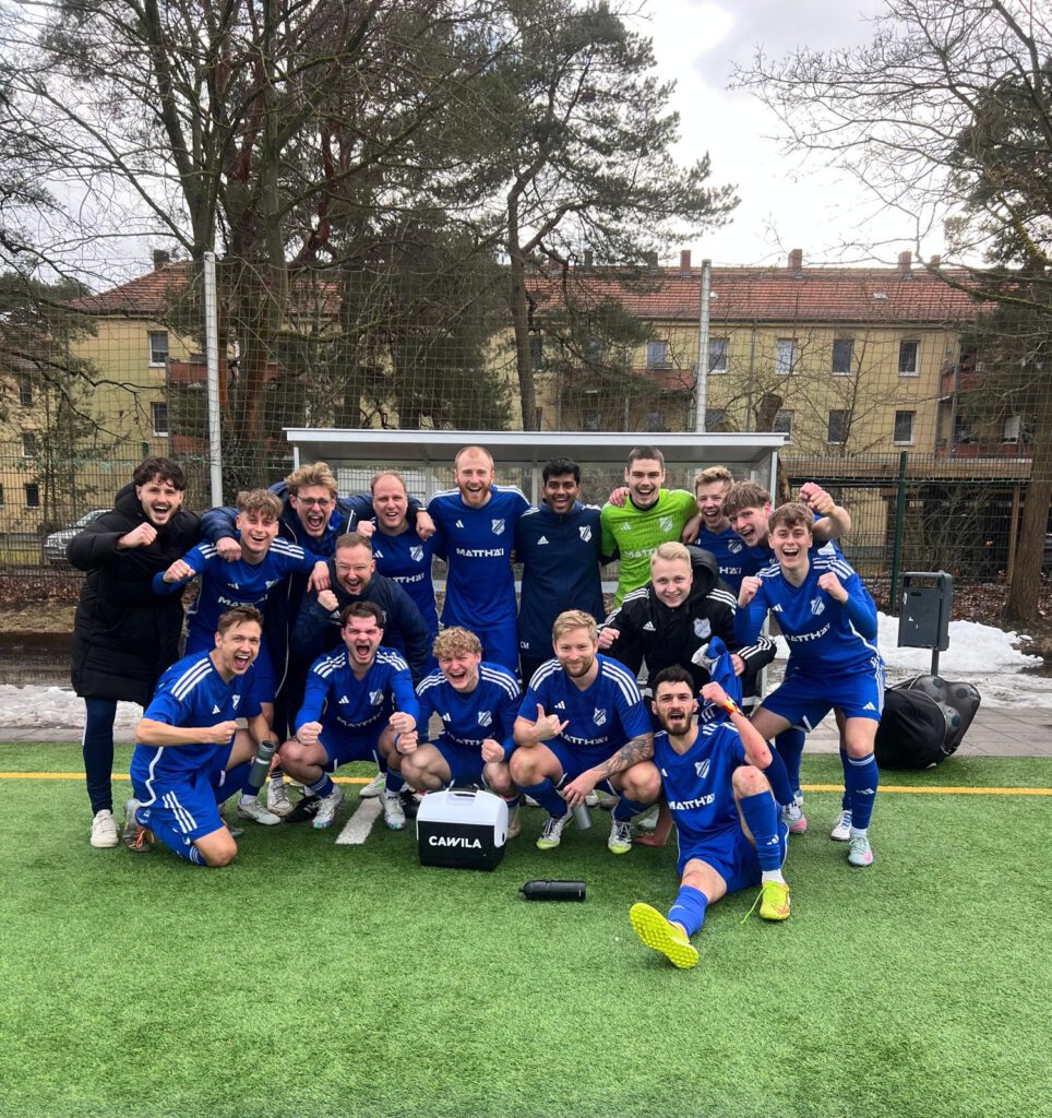Nach einer schwierigen Vorbereitung mit lediglich einem Testspiel stand für uns am Samstag das Nachholspiel gegen die zweite Mannschaft von SV Babelsberg 03 auf dem Programm. Bereits unter der Woche bereiteten wir uns im Rahmen der Möglichkeiten mit einer Einheit in der Halle sowie einem Training auf Schnee auf die Partie vor. Wir starteten mutig und engagiert ins Spiel und setzten das Babelsberger Tor in den ersten 25 Minuten stark unter Druck, ohne uns jedoch belohnen zu können. Kurz vor der Pause gelang uns nach einem Eckball der Führungstreffer, als Nici einen zweiten Ball zum 0:1 über die Linie drückte.